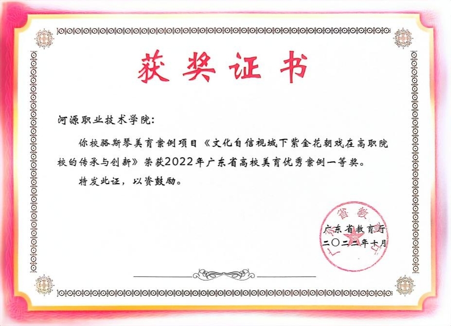 团队成员骆斯琴《文化自信视域下紫金花朝戏在高职院校的传承与创新》荣获2022年广东省高校美育优秀案例一等奖