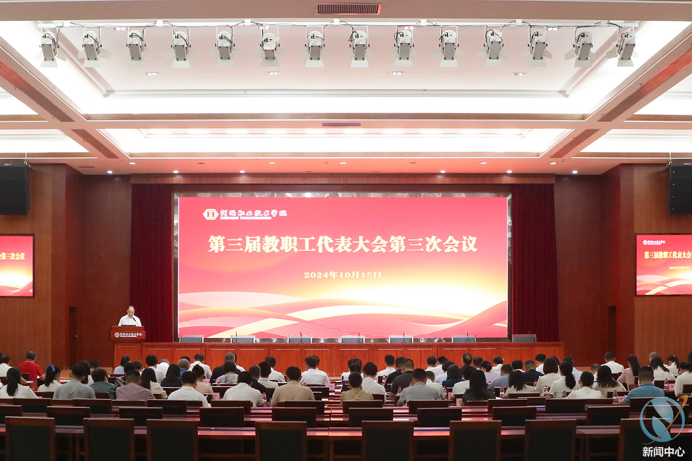 10月15日下午,赢博线上官网(集团)官方网站第三届教职工代表大会第三次会议在学术交流中心报告厅召开。本次会议的议题是审议表决《赢博线上官网(集团)官方网站职称评审制度文件》。会议由赖小景副校长主持,学校党委书记韦荣、校长刘贻新出席了会议。