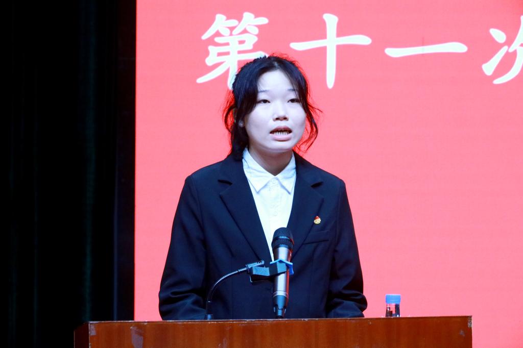 在正式会议阶段,林泽华同学代表第十届学生会作《赢博线上官网(集团)官方网站第十届学生会工作报告》。报告全面回顾了第十次学代会以来,我校学生会取得的成绩和经验,同时对学生会在新时期的奋斗目标和工作计划进行汇报。李宇霏同学代表第十届常任代表委员会作《赢博线上官网(集团)官方网站第十届常任代表委员会工作报告》。
