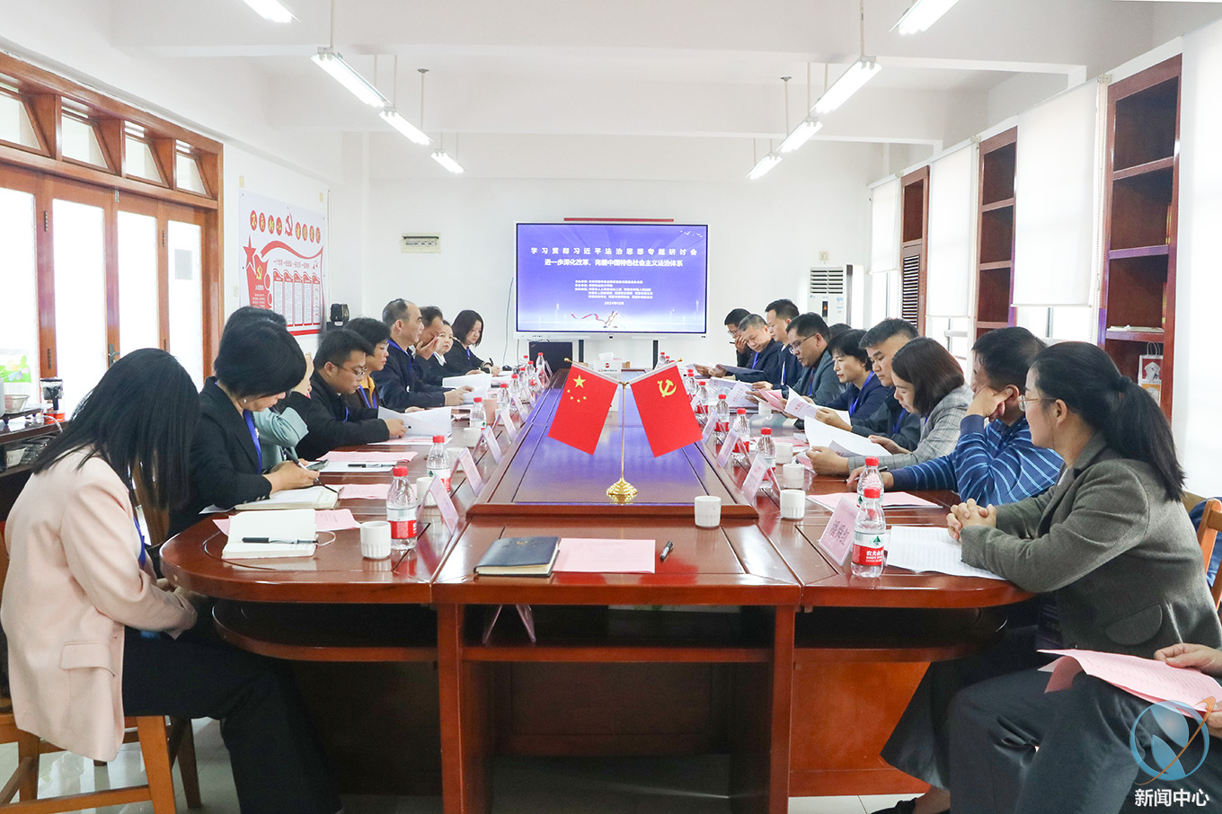 12月6日,我校与市委依法治市办在习近平法治思想学习宣传阵地联合举办了2024年宪法宣传周系列活动——学习宣传贯彻习近平法治思想专题研讨会,研讨会由副校长赖小景主持。市人大常委会法工委、市法院、市检察院、市公安局、市司法局、市法学会、河源市律师协会、河源仲裁委员会等单位的代表,以及我校党政办主任汤剑冰、马克思主义学院负责人杨党校、思政教师代表等参加研讨会。