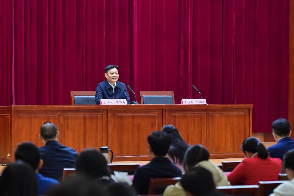 在一个多小时的授课中,何国森书记结合河源发展实际和自身学习、工作经历,以《感悟改革伟力不负青春韶华争做堪当民族复兴大任的时代新人》为题,与大家深入交流学习贯彻党的二十届三中全会精神的心得体会,从认识变革、参与变革、把握变革三个层面,对河源进一步全面深化改革要“怎么看”“怎么想”“怎么干”进行了深入浅出的解读阐释。