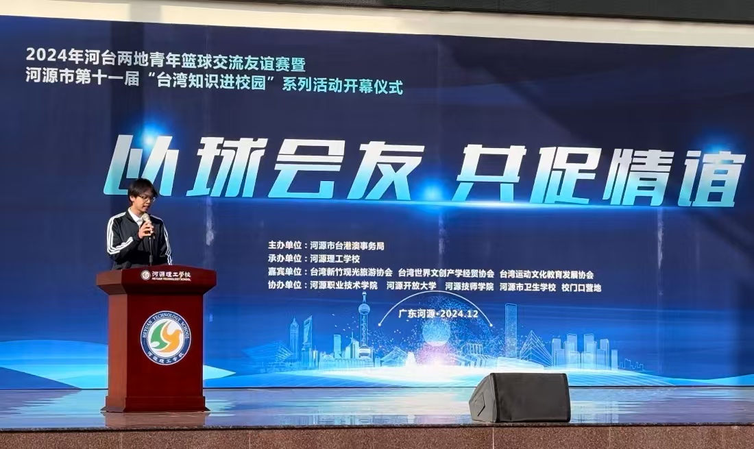 12月13日,2024年河台两地青年篮球交流友谊赛暨河源市第十一届“台湾知识进校园”系列活动开幕式在河源理工学校举行,我校党委副书记、纪委书记钟茂开出席仪式。