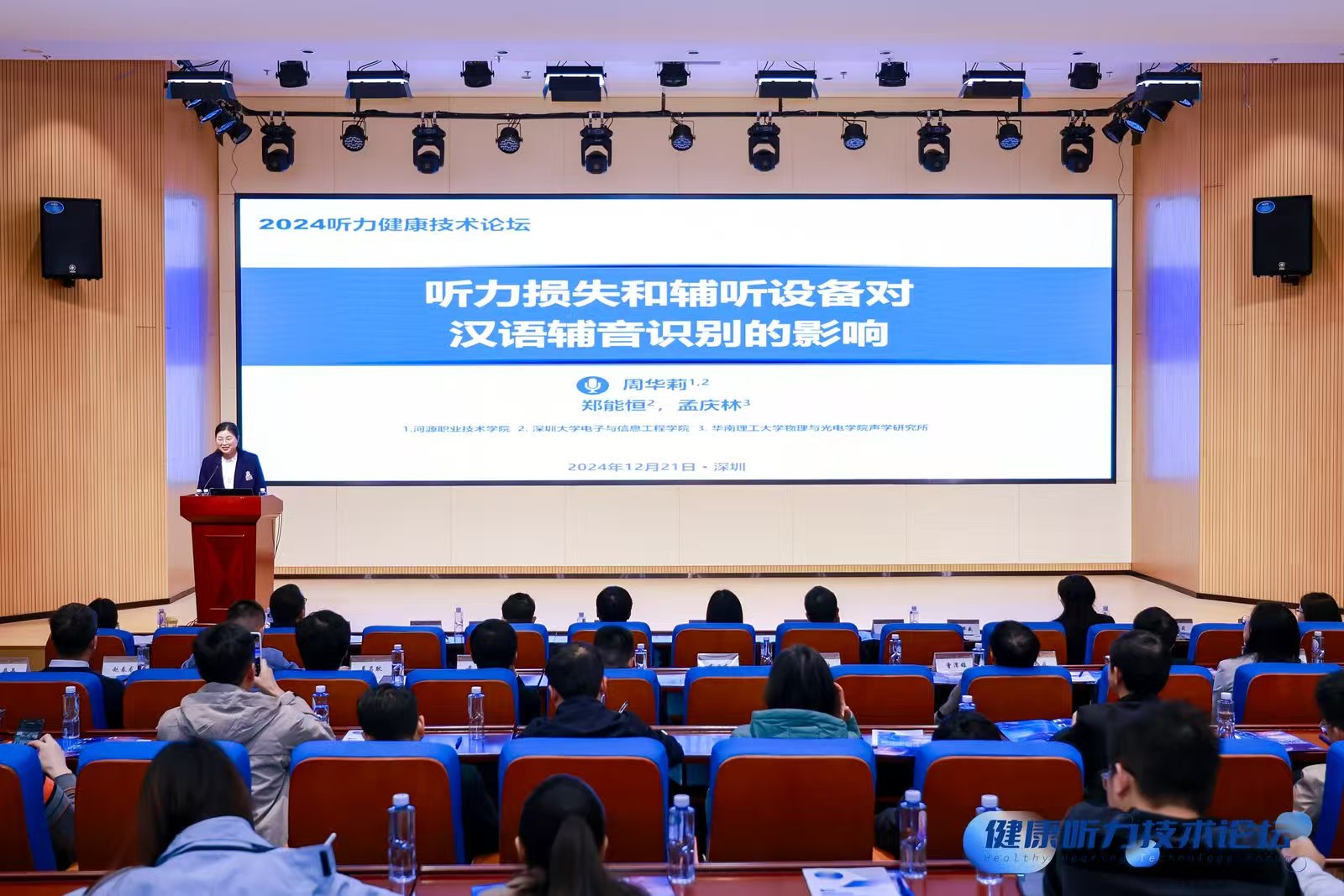 12月21日,由北京听力协会主办、深圳大学电子与信息工程学院协办的“2024健康听力技术论坛”在深圳圆满落幕。论坛吸引了来自全国各地的助听器制造商、知名专家学者、资深技术人员等共计130余人齐聚一堂,共同探讨听力健康领域的最新进展与未来趋势。我校周华莉博士受邀参加本次论坛,并在会上发表了主题演讲,还获聘为数字听力健康技术专业委员会核心委员。