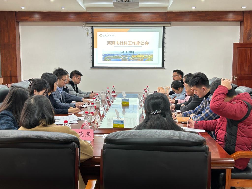 12月23日,河源市社科联在我校组织召开河源市社科工作座谈会。市社科联秘书长、学术规划部主任董劭文,我校科研处处长廖远兵以及来自广东技术师范大学、河源市委党校、河源技师学院、河源理工学校、粤多点教育社科普及基地等单位的社科工作者参加了座谈会,我校相关社科专家及社科工作者参加会议。