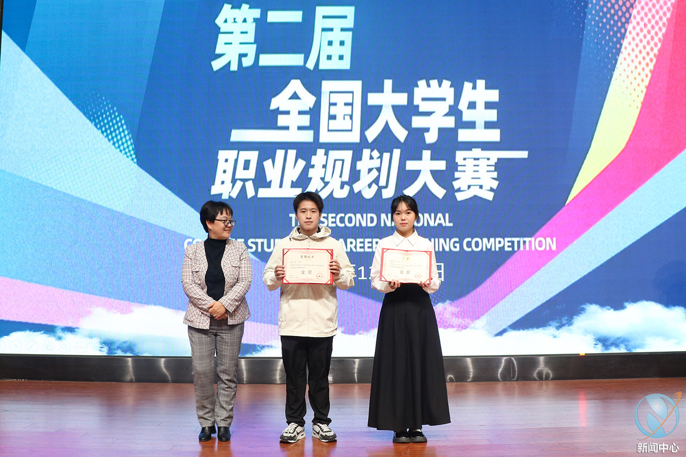 姚家芳副校长、人文艺术学院张超副书记、工商管理学院邹东平副书记分别成长赛道获奖选手、就业赛道获奖选手、优秀指导老师颁奖。