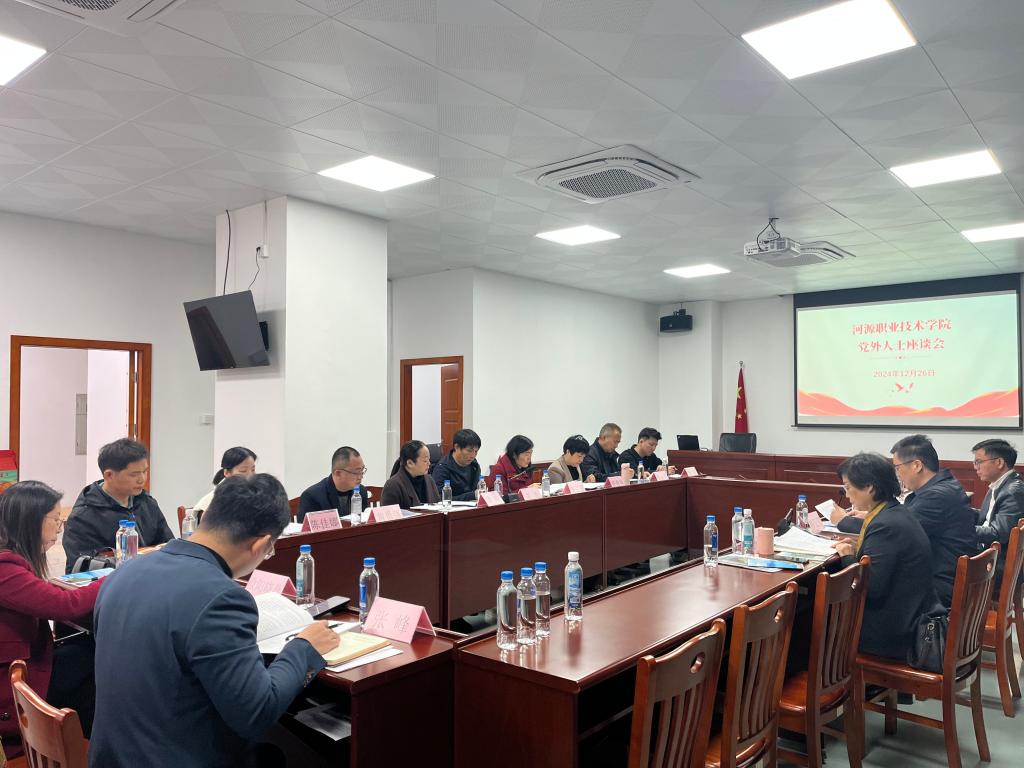 在第二段会议“学校党外人士座谈会”中,钟茂开通报了学校2024年主要工作情况,重点介绍了产教融合、校企合作工作做法和工作成效,对学校“十五五”规划编制的工作安排作了说明。
