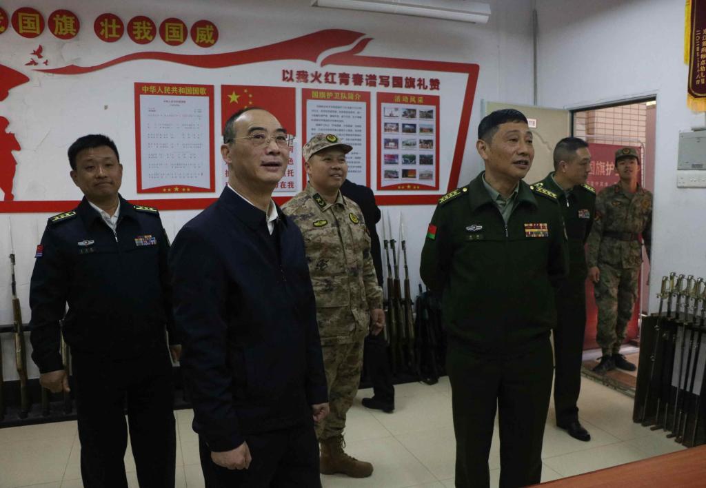 黄新司令员一行首先来到学校校史馆、军事社团活动室、兵员预征预储室、学校武装部(征兵工作站)等国防教育场所,在宣传部黄舒副部长、征兵工作站黄旺庆站长的详细讲解下,深入细致的了解我校自1930年建校至今的办学历史,实地调研大学生征兵和国防教育工作落实情况。