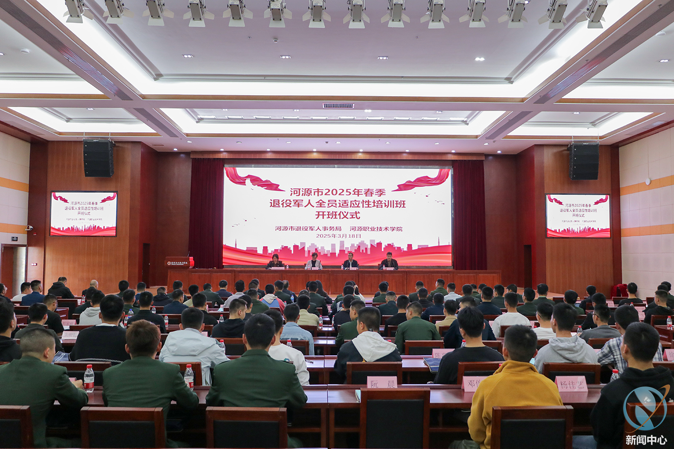 3月18日,河源市2025年春季退役军人全员适应性培训班开班仪式在我校学术交流中心报告厅举行。河源市退役军人事务局党组成员、副局长葛志伟,学校副校长姚家芳,市、县(区)退役军人事务局及市退役军人志愿者服务队相关人员,河源市2025年春季退役军人140余人参加开班仪式。开班仪式由继续教育学院院长李文萍主持。