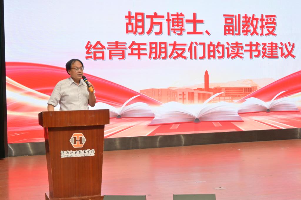 随后,胡方博士、副教授为在座全体师生分享个人读书感悟。他围绕《论语 学而》中“学而时习之,不亦说乎?有朋自远方来,不亦乐乎?人不知而不愠,不亦君子乎?” 三句话展开解析,强调读书学习要注重时常温习,还要多与志同道合的朋友交流讨论,更要付诸实践,知行合一。他教导同学们要从阅读学习中体会其所能带来的愉悦快乐,面对挫折困难和他人不理解时保持平和心态,提升自我修养,从学习、交友、处世等各方面,为青年朋友提供了为人处世的智慧。