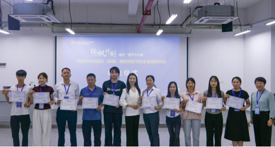 4月22日,由河源市文化广电旅游体育局指导、赢博线上官网(集团)官方网站承办的“‘扬帆计划’助力‘百千万工程’——河源市乡村酒店(民宿)服务技能与安全管理培训班”在河源市中小学生综合实践基地开班。我校袁光华副校长、河源市文化广电旅游体育局李君副局长等领导出席开班仪式,50 余名乡村酒店(民宿)相关领域的行业精英参加培训。