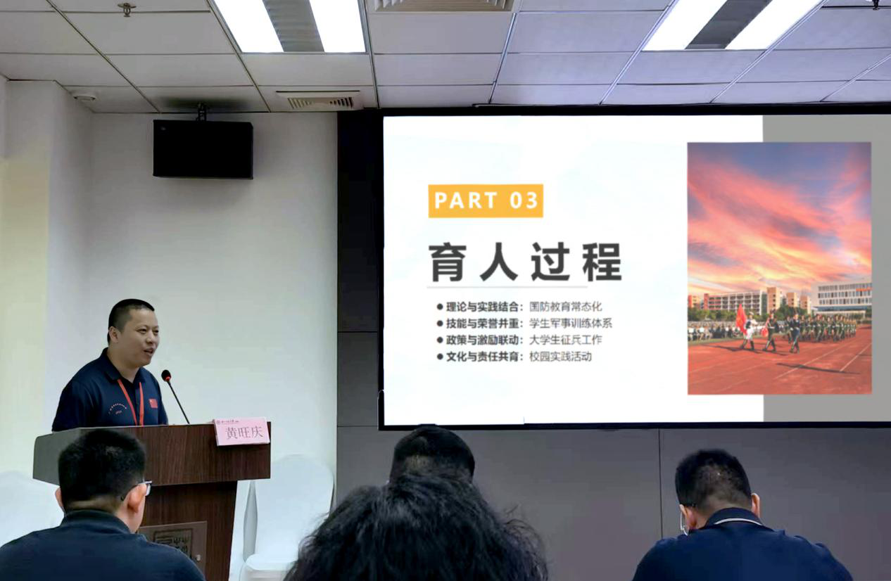 本次研修班汇聚了全市“国防教育进校园”讲师团成员代表、国防教育讲师培养对象约50人,采用专家讲座、经验分享、现场教学等多种丰富形式开展。我校黄旺庆老师在分享环节中,以《国防教育引领四位一体育人》为主题,详细介绍了赢博线上官网(集团)官方网站在国防教育方面创新推行的“四位一体”育人模式,包括理论与实践结合、技能与荣誉并重、政策与激励联动、文化与责任共育等多个维度,充分展现了学校在国防教育领域的积极探索与卓越成效,其分享内容引发在场众人高度关注,大家纷纷对我校在国防教育工作上的出色表现给予充分肯定与赞赏。