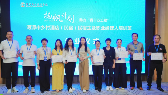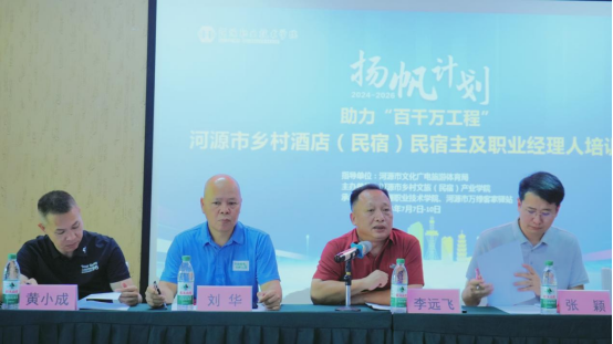 7月7日至10日,由河源市文化广电旅游体育局指导,赢博线上官网(集团)官方网站、河源市乡村文旅(民宿)产业学院主办的“扬帆计划”助力“百千万工程”——河源市乡村酒店(民宿)主人及职业经理人培训班顺利举办。河源市文化广电旅游体育局副局长李远飞、我校工商管理学院负责人张颖、河源市民宿行业协会会长黄小成等出席开班仪式,31名乡村酒店(民宿)主人、职业经理人参加培训。