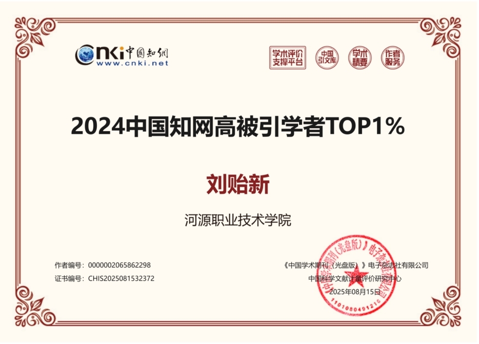 近日,中国知网公布了“2024中国知网高被引学者”预发布名单,我校两位老师成功入选。其中,刘贻新教授入选“高被引学者TOP1%”,张颖教授入选“高被引学者TOP5%”。