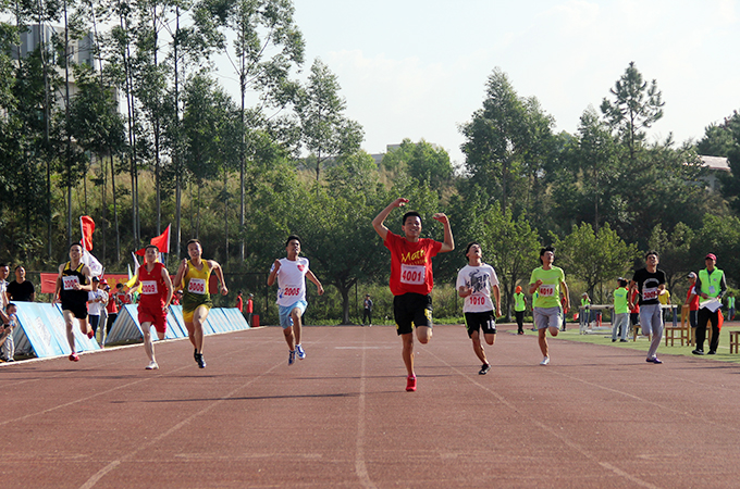 尽管艳阳高照,但是选手们依旧热情高涨。教职工的出场更让全场瞩目。赛场上,老师们如风一般的身影掠过,丝毫不逊色于更为年轻洋溢的学生们。最后,机电学院的陈东湖老师以7分90秒的成绩夺得桂冠,机电工程学院的易志华、叶增金分别以8分04秒和8分10秒的成绩获得亚军、季军。