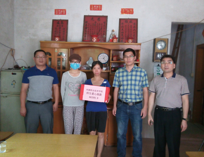 伍颖雯是我校电信学院14级应用电子技术专业学生,于4月24日被确诊患上“急性淋巴细胞白血病”,急需大量资金来挽救生命,但家境贫困。学校相关领导在得知此消息后,要求学校团委和电信学院共同倡议全校师生开展献爱心活动。5月5日至15日,在学校团委主导下,各二级学院团总支组织开展了募捐活动;校级九大学生组织、校学生会、各二级学院学生会采用宿舍区设点、签名墙等形式开展爱心募捐活动;学校大学生艺术团、社团联合会结合自身特点,以义演、义卖的形式在灯光篮球场开展筹集善款活动;利用网站、官方微信订阅号——河职院“青年1家”等媒体进行宣传,向社会爱心人士发出募捐倡议。此外,在电信学院还组织学院教工和历届毕业生开展募捐活动。献爱心活动得到了热烈反响,学校广大师生纷纷慷慨解囊,目前捐得善款6万多元,好些爱心人士还向伍颖雯同学表达真挚的祝福。
