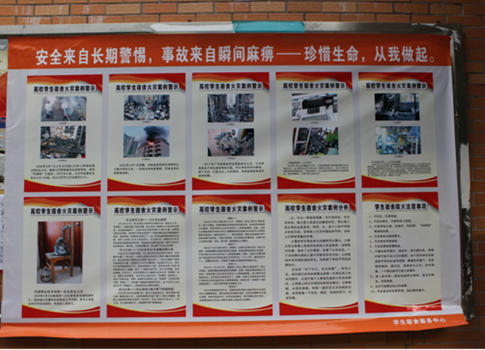 宿舍服务中心开展了为期一个月的宿舍安全文明教育系列活动。活动中通过海报和LED显示屏进行宣传,警示同学们勿使用违规物品,防范于未然。在各学院的密切配合下,安全文明教育系列活动取得良好的效果。