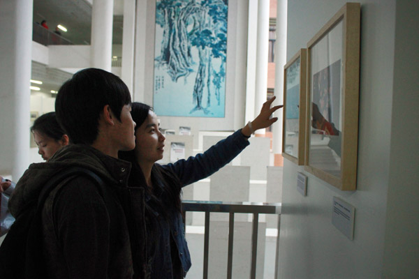 | 学生参观何健生图片展现场 |