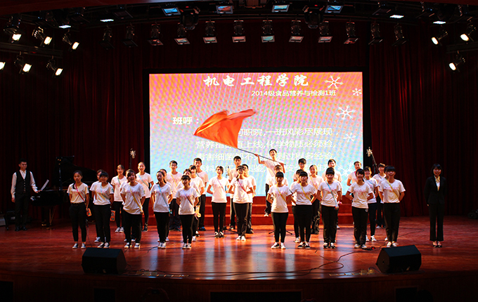 启动仪式结束后,由2014级新生组成的校歌、班呼展演活动为现场观众奉献了一场精彩纷呈的视听盛宴,展演活动以班级为单位,结合自身专业特色,展示班级青春风采,不断掀起活动高潮。其中,应用电子1班具有创意的荧光灯掀起了活动的第一波高潮;语文教育2班以独特的《弟子规》朗诵赢得观众阵阵掌声;旅游管理涉外1班以火辣的热舞把现场气氛推向最高潮。最后,活动在音乐教育班带来的《难忘今宵》中拉下帷幕。