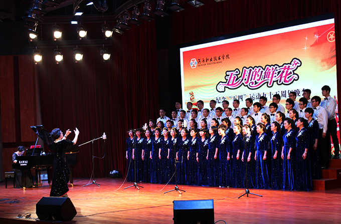 青春涌动,舞步飞扬。晚会在舞蹈《盛世欢腾》中拉开帷幕。《我的祖国》、《红旗飘扬》、《再见了大别山》、《你是这样的人》、《把一切献给党》、《怀念战友》、《共和国之恋》、《美丽中国》、《田野的春天》、《我像雪花天上来》、《家乡有座风雨桥》、《那就是我》、《乡音乡情》、《节日欢歌》等节目陆续精彩上演,不断点燃现场气氛,赢得现场观众阵阵掌声。表演者们用昂扬的歌声,饱满的情怀唱响五四精神,表达了对党和国家的赞美和热爱。晚会最后,学校教工合唱团深情演唱了《党啊,亲爱的妈妈》和《在灿烂阳光下》两首曲目,为整场晚会画上了一个圆满的句号。