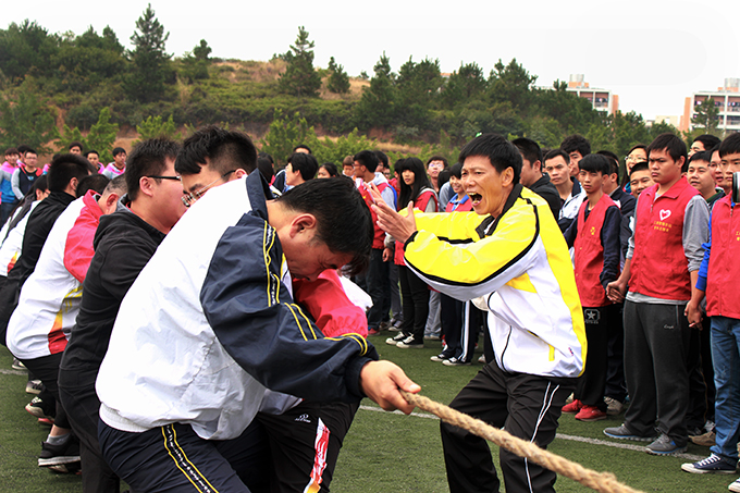 开幕式后,全体校领导及各处室、院部老师代表组成的运动员队伍以拔河友谊赛的形式拉开运动会的帷幕,各项比赛在热烈的气氛中依次开展。