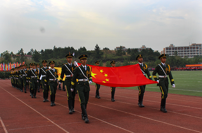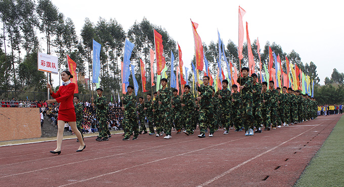 记者在现场看到,国旗护卫队、校旗队、会旗队、彩旗队、裁判员方阵、各二级单位代表队迈着整齐的步伐,喊着响亮的口号,气势昂扬、神采奕奕地走过主席台。在庄严的升旗仪式后,校长刘安华上台致开幕词。他表示,体育运动是素质教育的重要内容,也是学校精神文明建设和校园文化建设的重要组成部分。举办此次运动会是对学校素质教育和体育工作的一次大检阅,是全体师生身体素质和精神风貌的一次大展示。他希望全体运动员、裁判员、大会工作人员、师生能共同努力,把本届校运会办成一个“文明、热烈、精彩、圆满”的体育盛会。