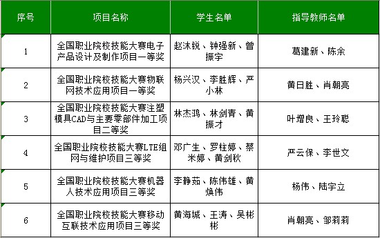 2013全国职业院校技能大赛日前于天津正式落下帷幕。从前线传回最新消息,我校代表队在各项竞赛中发挥神勇,再创佳绩:勇夺两项全国一等奖,一项全国二等奖,三项全国三等奖。更多消息请留意后续报道。