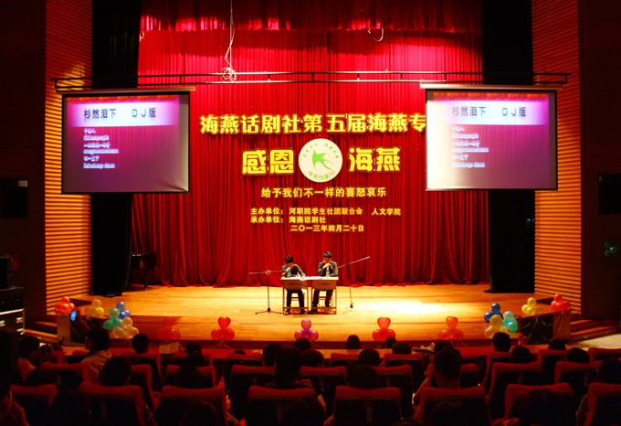 4月20日,学校海燕话剧社于学术报告厅举行以“感恩海燕――给予我们不一样的喜怒哀乐”为主题的第五届海燕专场演出。整场演出以模拟电视节目《感动中国十大人物》的独特形式进行,精彩的节目表演赢得了现场观众的喝彩。副校长赖小景欣赏了晚会。