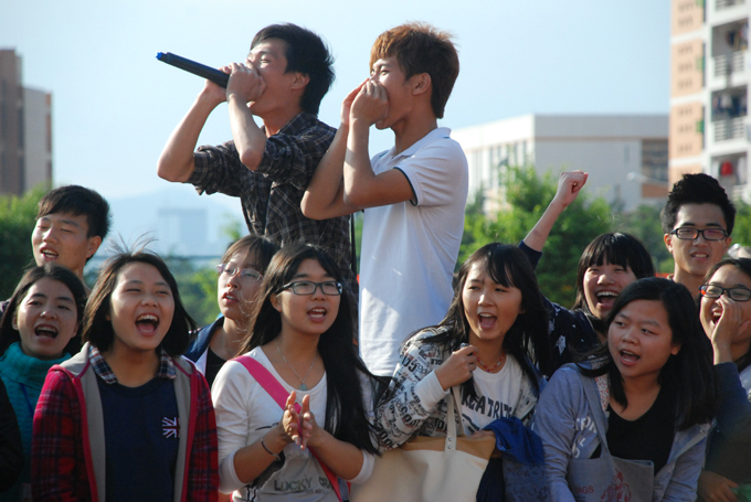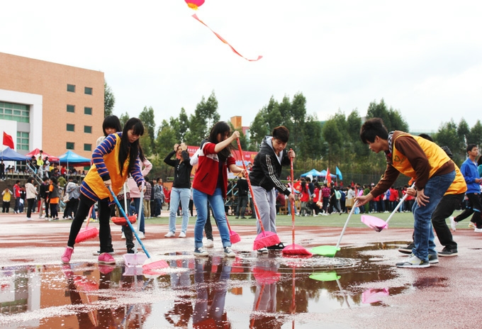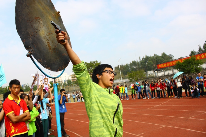 1500米、3000米、5000米,他们是选手的陪跑;50米、100米、200米,他们是选手的计时器。啦啦队们在运动场上成了学院之间的另类竞赛选手,大家用响亮的加油声,飘扬的各色旗帜,各具院系特色的加油牌,为各自学院的运动员们加油助威。