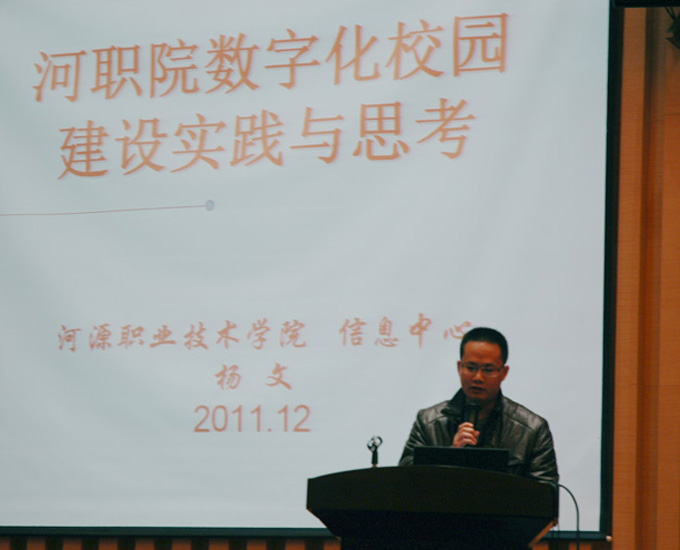 我校信息中心主任杨文在会上为高职院校代表作了题为“赢博线上官网(集团)官方网站数字化校园建设实践与思考”的报告。我校“数字化校园”一期建设项目得到了与会领导、专家的一致认可与好评。杨文还被评为“广东省高等学校信息与网络建设先进工作者”,为我校争得了荣誉。