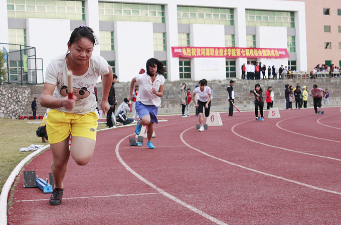 16点整,教工组4X100接力赛决赛在运动场上进行。继续教育学院代表队和人文学院代表队分别以1’11” 47和52” 45的佳绩分获本届运动会教工青年组女子和男子的冠军。