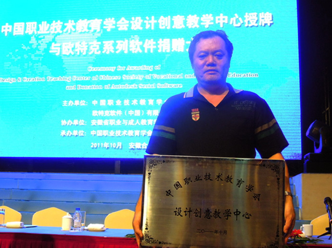 “中心”项目是中国职业技术教育学会(下称“学会”)与欧特克公司合作启动的项目,机电学院工业设计专业主任担任技术负责人,于9月初负责组织申报,并于23日申报成功成为首批立项院校之一,随即学校收到学会邀请参加授牌及正版软件捐赠大会。