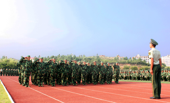 9月22日,我校2011级新生军训暨入学教育总结大会在足球场隆重召开。校长刘安华、党委副书记韦荣、副校长陈农心、专员刘守义,市武警支队队长黄福民、市武警支队参谋长张翼及全体教官和11级新生出席了此次大会。