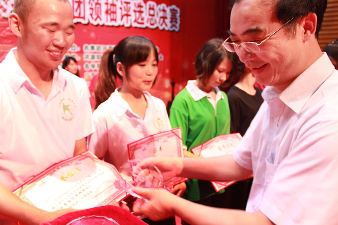 纪委副书记赖小景、图书馆馆长邵魁德分别为获得十大学生社团领袖称号和优秀奖的选手颁奖。