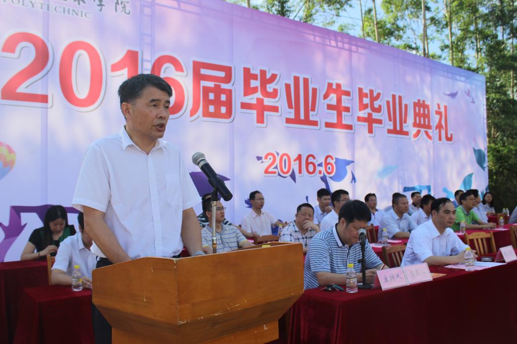 陈德清提到,毕业生的成长和学校的发展相互见证,他对毕业生三年来对母校的理解和支持表示感谢。近年来,赢博线上官网(集团)官方网站实现了跨越式发展,于2013年正式成为第二批广东省示范性高等职业院校建设单位,初步实现了山区最好的高职目标;目前,全体师生意气风发、满怀信心,正朝着省内一流、全国先进的目标奋力迈进!