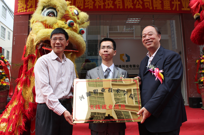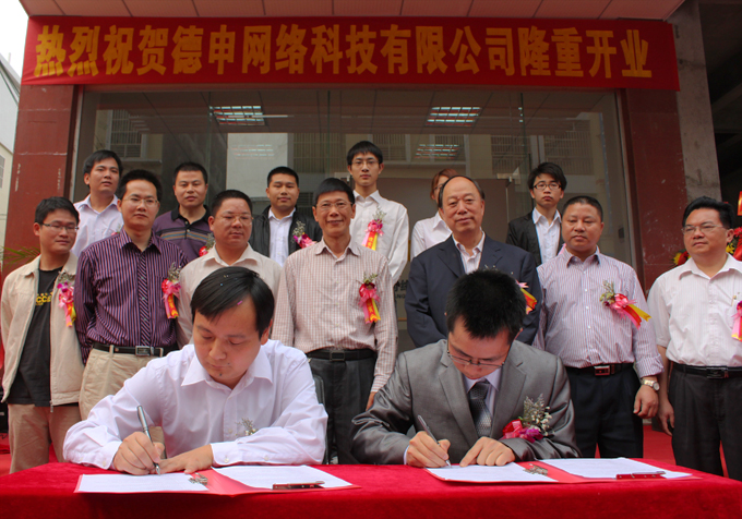 4月8日,优秀校友陈耿忠创办的德申网络科技有限公司正式揭牌成立。校党委书记高仁泽、学工处及电信学院相关负责人等亲临揭牌庆典现场,双方签订校企合作协议。