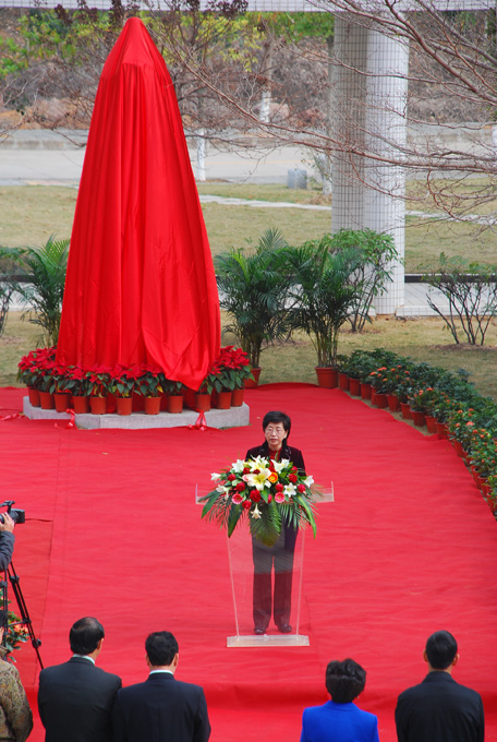 3月5日,孙中山先生的孙女孙穗芳博士抵达我校出席孙中山铜像揭幕仪式,并现场捐赠《国父孙中山先生纪念集》、《我的祖父孙中山》等书籍及题词“天下为公”的书法作品。副市长叶维园出席仪式。
