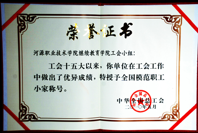 继续教育学院工会小组将以荣获“全国模范职工之家”称号为契机,加倍努力把工会建设成组织健全、维权到位、工作规范、作用明显、职工信赖的教职工之家,努力把继续教育学院工会小组建成“民主和谐之家”和“温馨之家”。