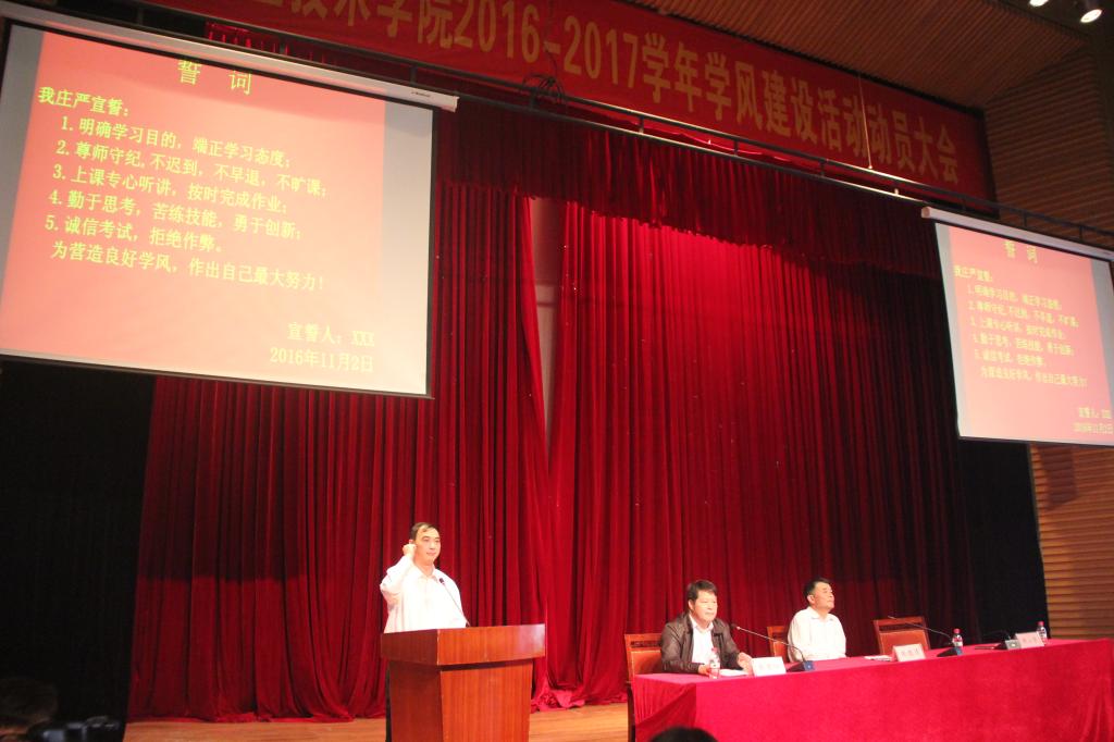 会议上,学生工作处何智聪处长详细解读了《赢博线上官网(集团)官方网站2016-2017学年学风建设活动实施方案》,该方案明确了学风建设的指导思想、工作任务、组织机构、实施内容、工作部署和实施要求,并针对我校存在的学风问题,着重提出学风建设的相关措施。