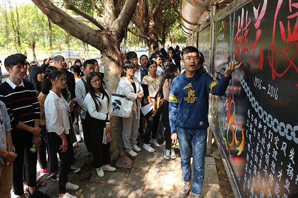 (校团委通讯员 黄志远 学生文字记者 陈玉棱)11月5号中午,我校团委于学校A区饭堂门口开展“纪念红军长征胜利八十周年”为主题的黑板报评比活动。我校九大学生组织代表及各二级学院学生干部代表参加了此次评比活动。