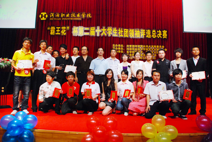 5月13日,由共青团赢博线上官网(集团)官方网站委员会主办的“霸王花”杯第二届十大学生社团领袖决赛在我校学术报告厅举行。学校纪委赖小景副书记、督导处王世同教授、校团委相关负责人及广东霸王花食品有限公司销售部经理钟远爱先生及学生社团代表等参加了此次评选活动。