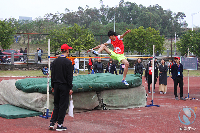 同日上午,学生普通组男子跳高决赛准时开赛。16物业管理1班郑淦荣以1.59米的优秀成绩荣获本次比赛冠军; 16酒管3班邹向前以1.59米成绩获得亚军。