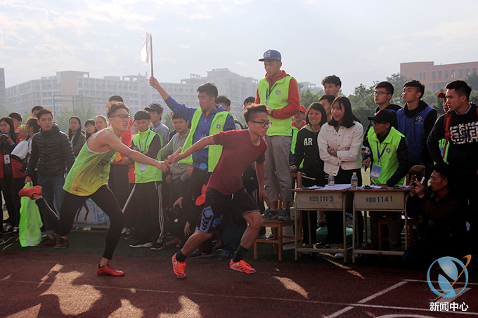 其中,工商管理学院代表队前两棒都领先第一,但在最后一次交接的时候,被电信工程学院代表队反超。这考验的不仅是选手的速度,更是队员之间的默契与配合。
