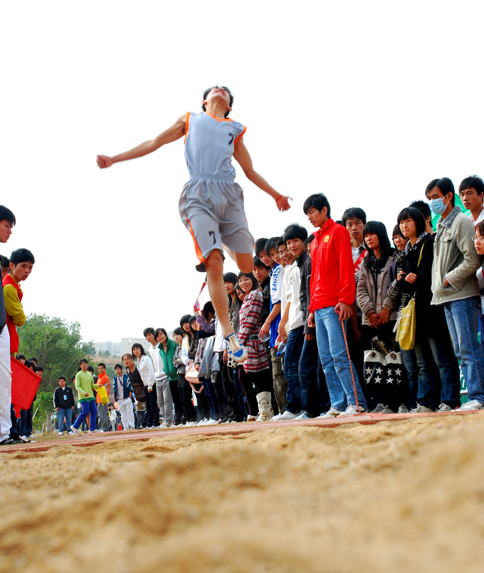 来自工商管理学院陈晓毅同学在学生组男子三级跳远比赛中,两次刷新我校记录,最终以13.16米的好成绩夺得冠军。
