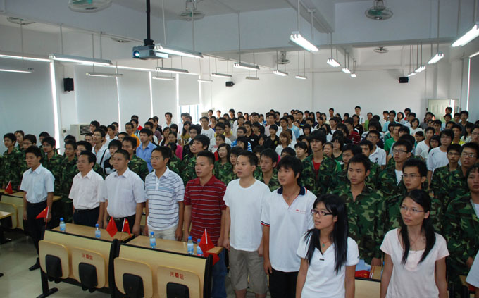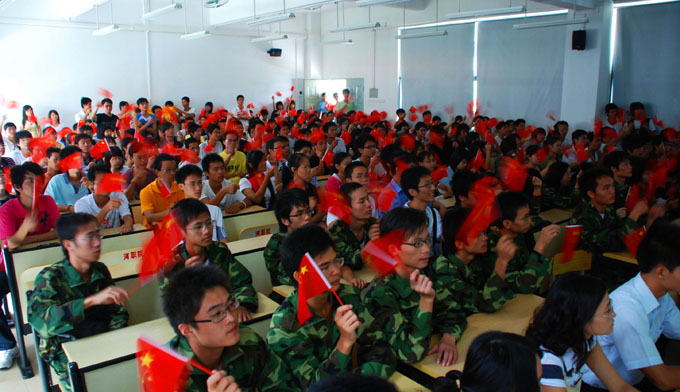 10时,在胡锦涛总书记的宣布下,活动正式开始。当国歌声响起的时候,师生们都不约而同地合唱起来,浓厚的爱国情怀伴着歌声在每个人心中回荡。