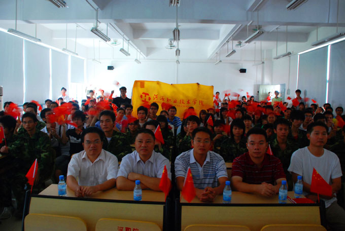 09新生张同学说,此次国庆阅兵虽然没有和家人一起观看,但能够和那么多同学及老师们一起见证新中国60华诞感到非常高兴。他说这次活动将让他终生难忘,并相信祖国会越来越强大,人民的生活会越来越幸福,我们的未来会越来越美好。