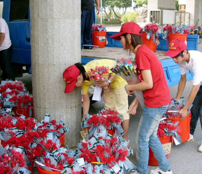 接过志愿者手中玫瑰花的商店工人小刘笑着说:“以为是哪个商家搞的玫瑰花大赠送,但仔细看看系在花上的宣传卡片写着‘客家古邑重仁义,万绿河源满真情;科学发展万事兴,文明礼仪伴我行’ 和‘创卫创模乐参与,城乡秀美人康宁’,心里一下子明白了是怎么回事。所以我决定把玫瑰花和卡片放一起在商店显眼的位置,让更多顾客看到后也一起加入‘争做文明事、争做文明人’的行列中来。”