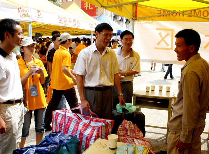 09迎新工作于今日全面展开,为把更多的关爱传递给新生,我校主要领导亲临各迎新点看望“迎新”工作人员、询问新生报到情况、现场指导迎新工作及慰问新生和家长。