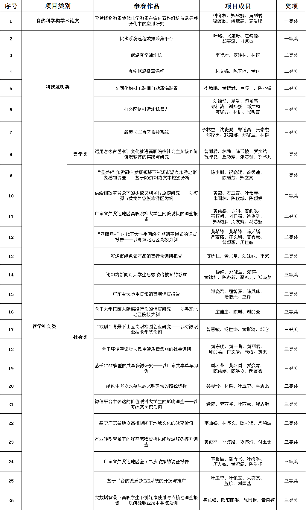 附: 获奖作品名单
