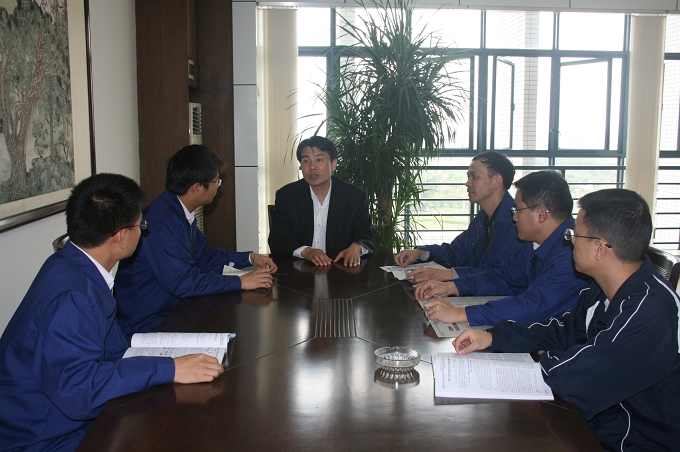 陈德清副校长对实训中心积极践行科学发展观以及前段的工作作了充分的肯定。他说,实训中心强势推进校企合作,不断创新人才培养模式,比如在校内生产性实训基地方面,进一步加强与丰达(河源)电子有限公司的合作,取得了较好的效果,而且与河源市博通汽车维修服务有限公司的校企合作也初步达成意向;在对外服务、对外培训以及科研开发也有新的进展,比如与河源富马硬质合金股份有限公司合作研发整体硬质合金圆锯片数控磨床,最近《河源日报》、河源电视台报道发明的智能限电器,在与社会的培训机构以及有关中职学校准备开展的职业技能培训等,体现了我校“厚德强技,服务地方”的理念。