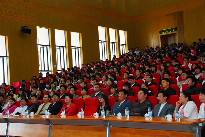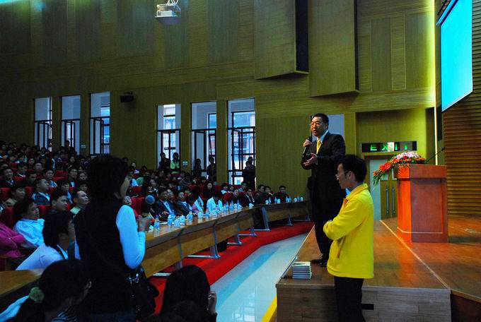 在谈及金融危机的影响,吴先生认为,金融危机不是件坏事,谁在金融危机影响下打好基础,谁就成功。金融危机是给我们休养生息时候,是大家一起“玩”的时候,要自强不息,抓住机会,争取养息后以更昂扬的姿态为河源人、为客家人、为广东人、为中国人争气。 吴博士与现场的同学进行了互动交流,同学们就现今大学生就业心态、怎样拥有自信心、如何坚定信心等问题向吴博士求教,他一一耐心细致地作了解答,吴博士热情洋溢、真实质朴的精彩讲座博得了在场同学们十分热烈的掌声。